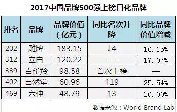 6月22日,在全球具有一定影响力的独立品牌评估机构——世界品牌实验室(World Brand Lab)发布了最新年度《2017中国品牌500强》。日化领域的雕牌、立白、百雀羚、自然堂、六神5个中国日化品牌跻身中国品牌500强。