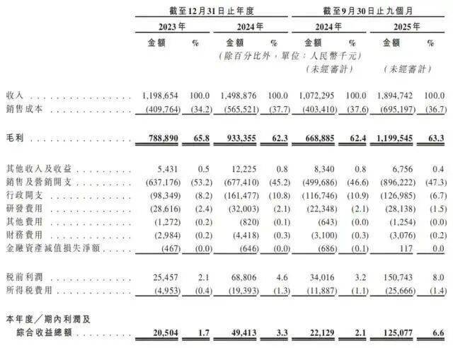 头部规模效应带来了营利快增:2023年、2024年及2025年前九月(以下简称“报告期”),公司营收11.99亿元、14.99亿元和18.95亿元;对应净利0.21亿元、0.49亿元和1.25亿元。