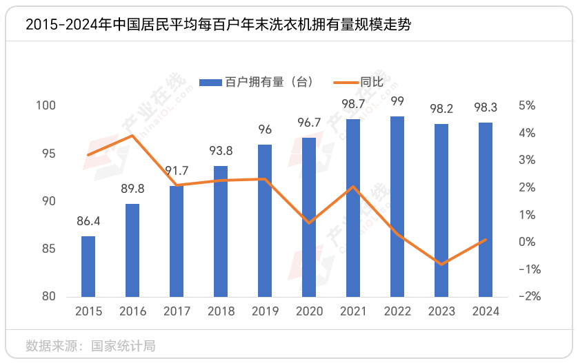 作者:PA直营 日期:2026-02-14 浏览: 来源:PA直营官网近年来,中国洗衣机市场完成了从增量市场向存量市场的转型。家电下乡时期释放的农村市场潜力为后续市场更新换代奠定了基础。国家统计局数据显示,当前中国居民平均每百户拥有量已接近百台,连续四年在98-99台之间徘徊。
