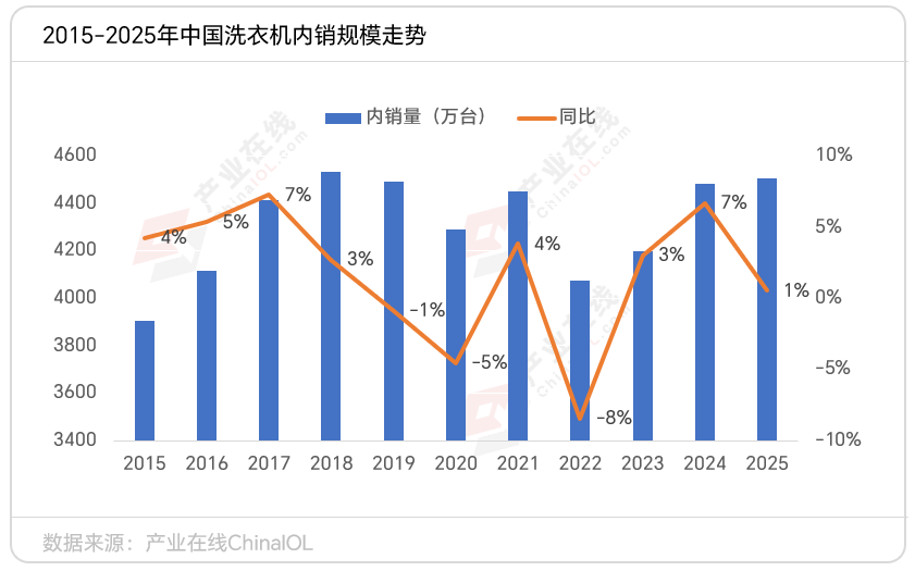 同期产业在线年以来,中国洗衣机市场环境发生显著变化:家庭保有量已接近饱和,新增需求明显乏力,行业增长核心动力逐渐转向老旧产品的换新需求。与此同时,市场竞争焦点也发生转移,企业开始聚焦差异化创新,以适配消费者日益精细化的洗护需求。这一转型反映了市场从追求规模扩张向注重质量提升的转变。