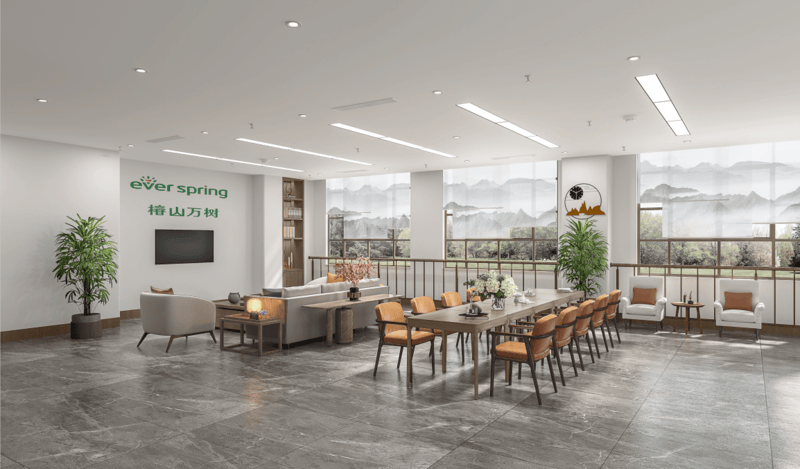 2022年诞生的北京市石景山区民族养老院五里坨康养中心,是连锁机构第四家“健康养护”主题机构,坐落于京西翠微山下,亭阁楼台错落,鸟语花香四季缤纷,园内阳光棚种植的20多味药用植物,让康养融入日常观赏与品鉴中。